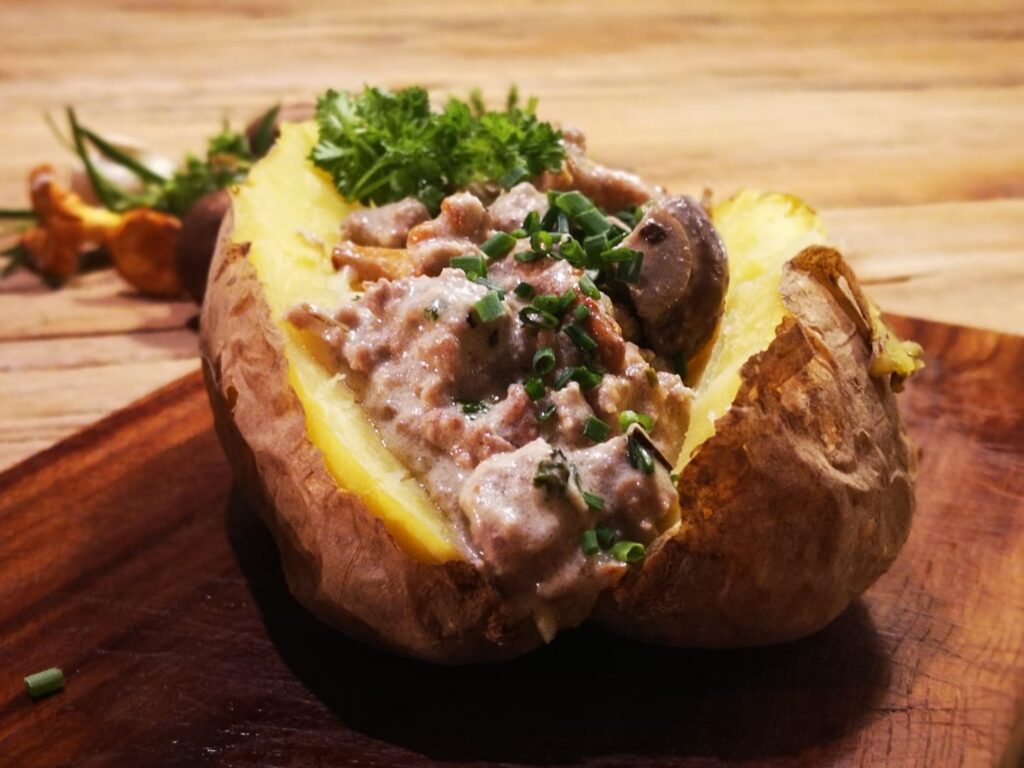 Alle Kartoffelgerichte werden immer frisch und mit viel Liebe von uns selbst zubereitet und sind frei von künstlichen Geschmacksverstärkern, Konservierungs- und Farbstoffen oder Ähnlichem. Die Kartoffelsorte variiert je nach Jahreszeit. Grundsätzlich verwenden wir aber immer extra große Kartoffeln.